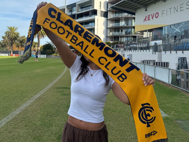 The purrfect blend of team spirit and style! Whether you’re roaring from the stands or prowling through town, this vibrant accessory is your ticket to turning heads and spreading Claremont pride.Its reversible design allows you to pick blue OR old gold! Pair it with your fav jacket for a casual look, or drape it over your shoulders for a touch of sporty elegance.So why wait? Add a splash of Old Gold AND navy to the game day crowd, and show your support!#winter#reversible#blue#gold
